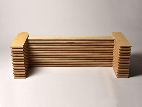 Aspiring to be a cushy overstuffed couch with obligatory raised armrests, the WannaBe Couch succeeds only in mimicking its iconic form through a spartan framework. The WannaBe Couch is made of thirteen ply maple plywood.
